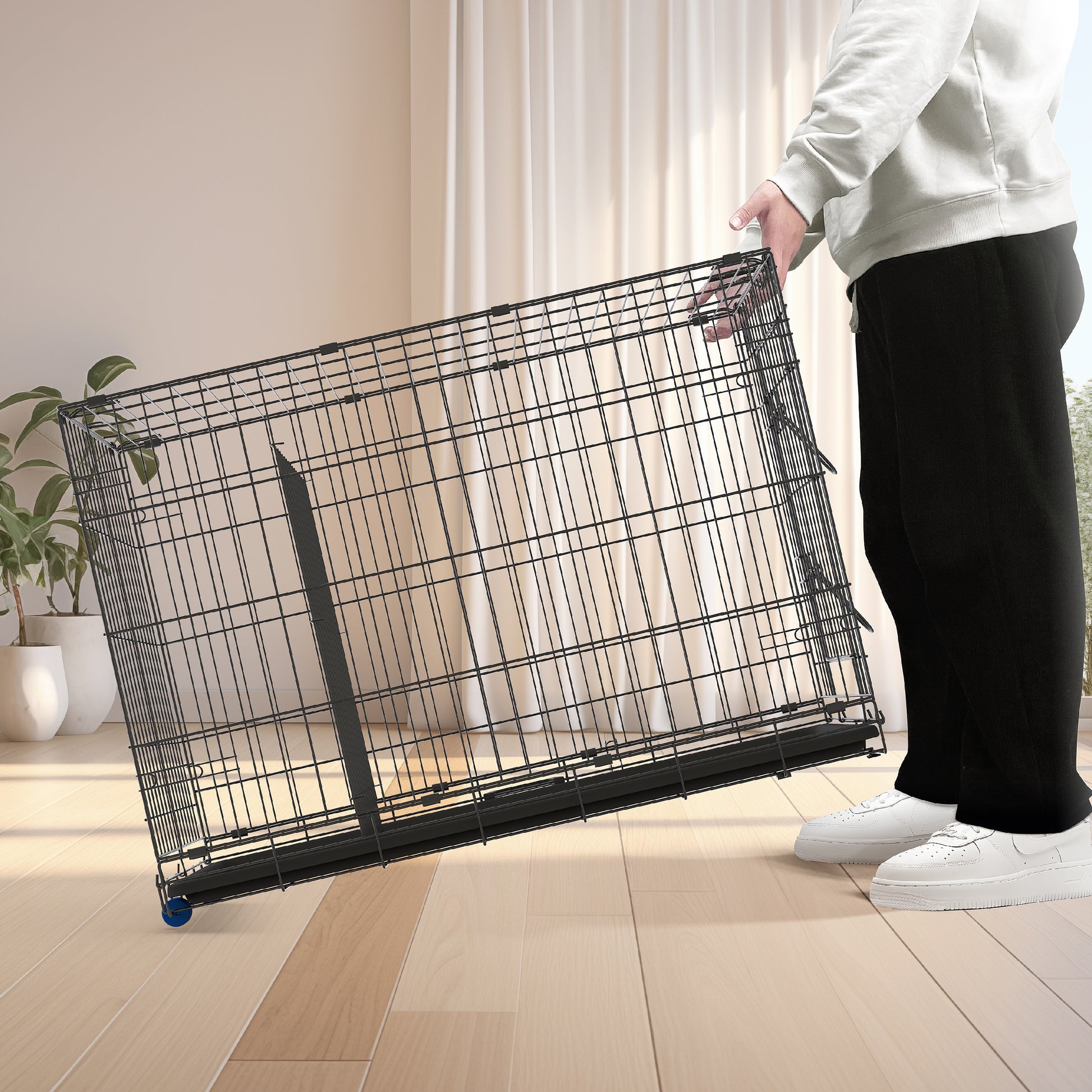 PETS TUFF Great CRATES 36” Large Dog Crate, 42” X-Large Dog Crate, 48” XX-Large Dog Crate - Durable Leaf-Proof Tray - Foldable, Carry Handle & Wheels for Easy Moving-2 Door Dog Cage