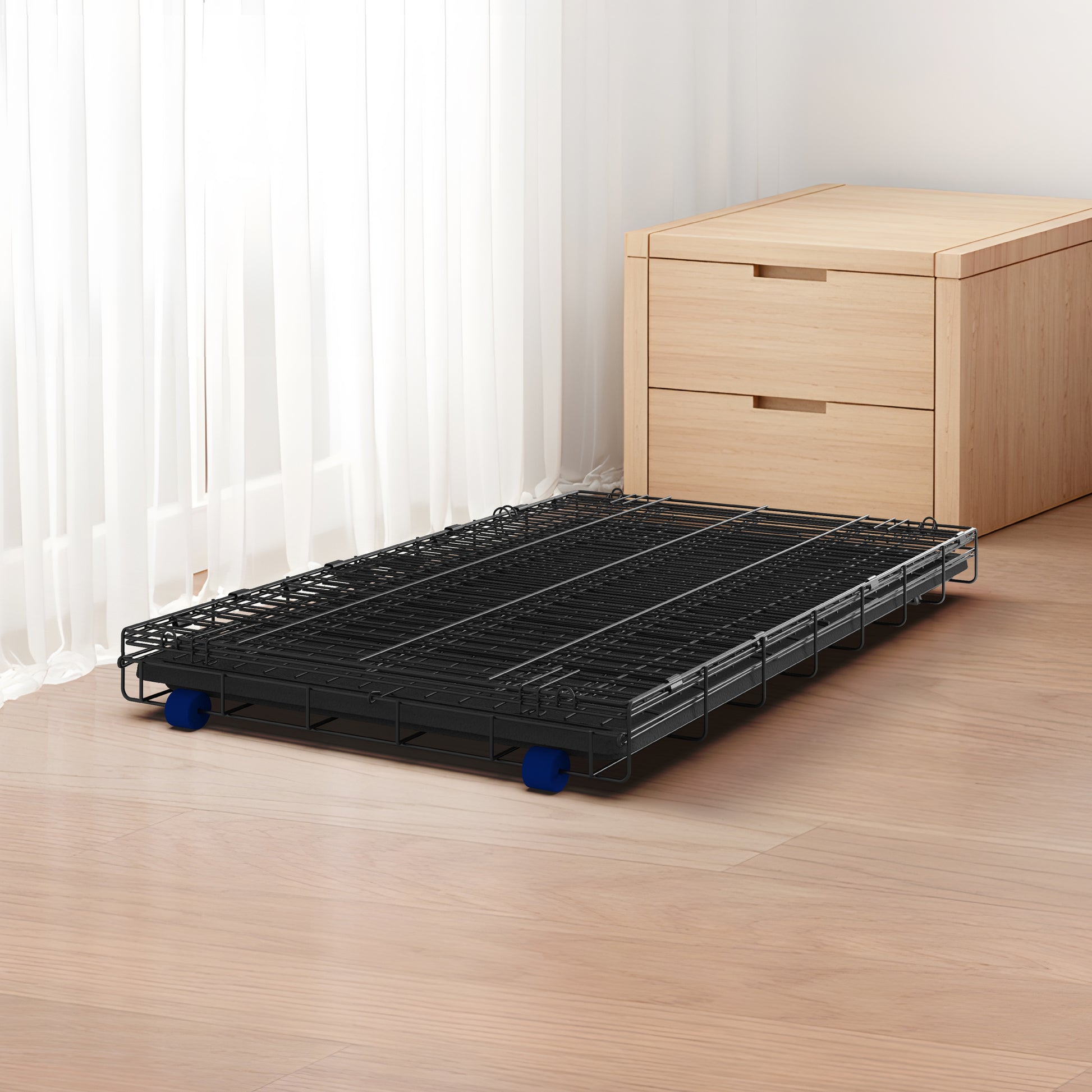 - WHEELS - CONVENIENT AND MOBILE: The durable rubber wheels make moving our dog crates around a walk in the park! Folds flat and opens in seconds for easy storage and transport.